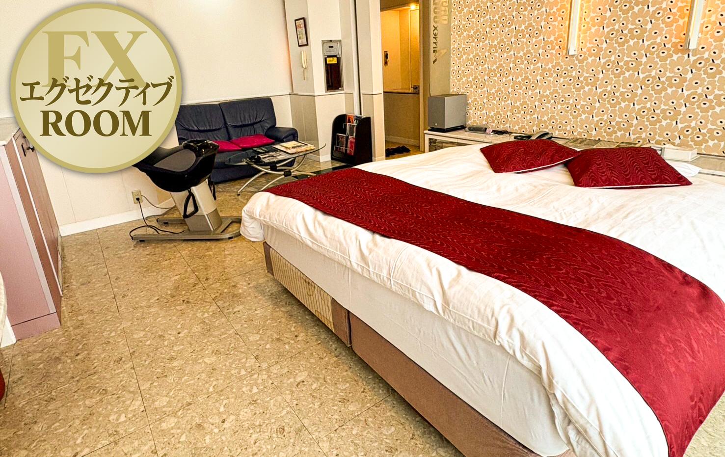お部屋の画像をクリックすると、拡大イメージが表示されます。 ルームナンバーをクリックすると、料金やタイムプランなどの詳細情報が表示され、お部屋のご予約ができます。 VIPルーム 料金システム No. 801 露天風呂・乾式サウナ・リファヘアケア No. 802 露天風呂・乾式サウナ・マッサージチェア・乗馬マシン・カラオケ・75インチ大型テレビ・リファヘアケア No. 803 乾式サウナ・乗馬マシン・ラブチェア・リファヘアケア エグゼクティブルーム 料金システム No. 701 ダーツ No. 702 マッサージチェア No. 703 マッサージチェア No. 705 乗馬マシン No. 706 コスプレ スイートルーム 料金システム No. 501 コスプレ No. 502 マッサージチェア No. 503 No. 505 No. 506 骨盤チェアー・シェイプ No. 601 プリンセス No. 602 No. 603 No. 605 乗馬マシン No. 606 コスプレ デラックスルーム 料金システム No. 302 マッサージチェア No. 303 No. 305 No. 401 No. 402 No. 403 No. 405 No. 406 SM スタンダードルーム 料金システム No. 301 No. 306